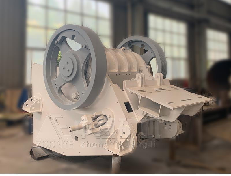 電動機驅(qū)動皮帶和皮帶輪,通過偏心軸使動鄂前后上下擺動,當(dāng)動鄂推動動鄂板向定鄂板運動時,物料被壓 碎或劈碎。當(dāng)動鄂和動鄂板在偏心軸、彈簧的作用下后退時,先前已被壓碎或劈碎的物料從鄂板的下部排料口排出。隨著電動機連續(xù)轉(zhuǎn)動而破碎機動鄂作周期性地壓 碎和排泄物料,實現(xiàn)批量生產(chǎn)。